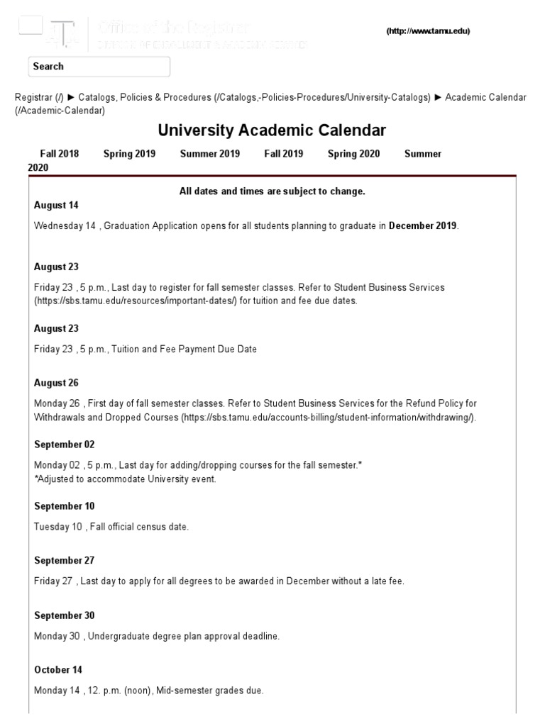 Https Law Tamu Edu Docs Default Source Registrar Documents Jd Program Academic Calendar 2021 2022 Pdf Sfvrsn 2 Detail Image Https Dentistry Tamu Edu Academic Calendars Approved 21 22 Academic Calendar Pdf. Day- Campus Closed 18th Spring 1st Class Day 21st Spring Last Day to Add without Instructor Dean Approval 24th Spring 80 Withdrawal Refund Deadline 31st Spring 70 Withdrawal Refund Deadline 2nd Spring. 2021-2022 Academic Calendar. See Student Rule 51.